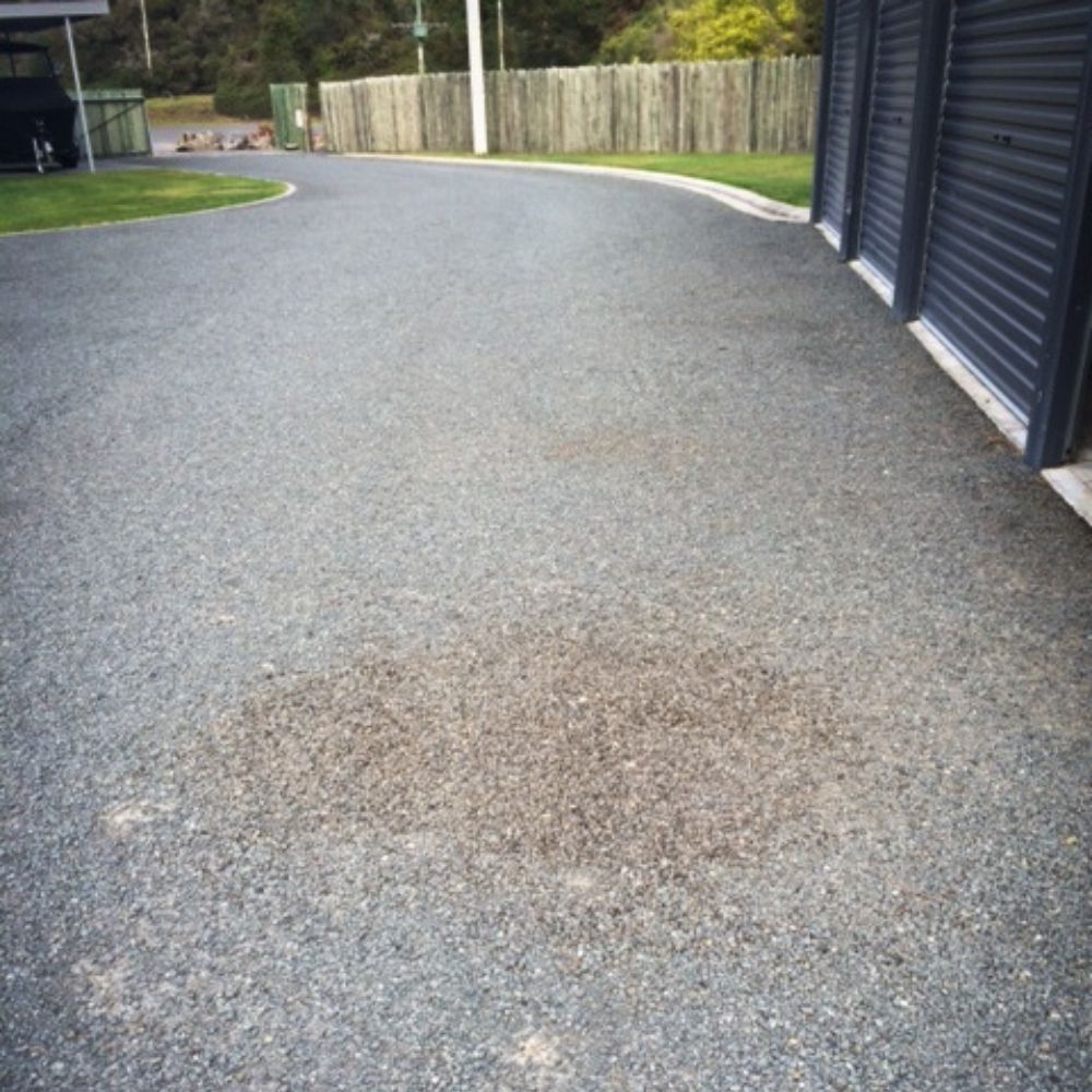 Small oil, petrol and diesel spot stains on the driveway and in the garage, cooking oil stains around the BBQ and outdoor living areas.
