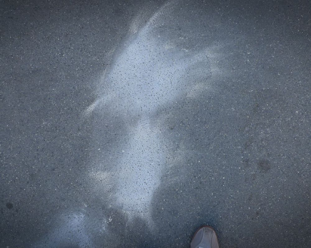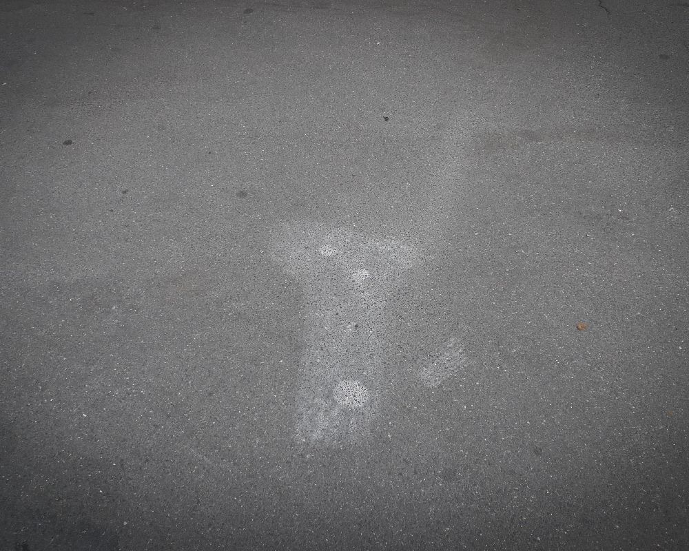Removal of old oil spot stain from asphalt.