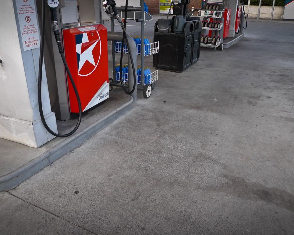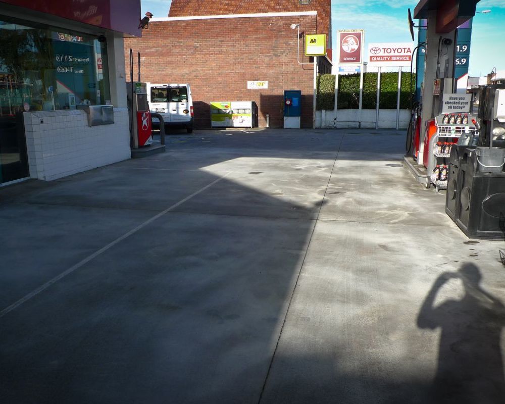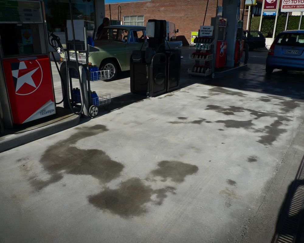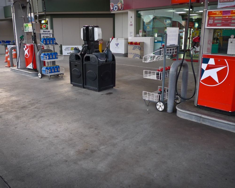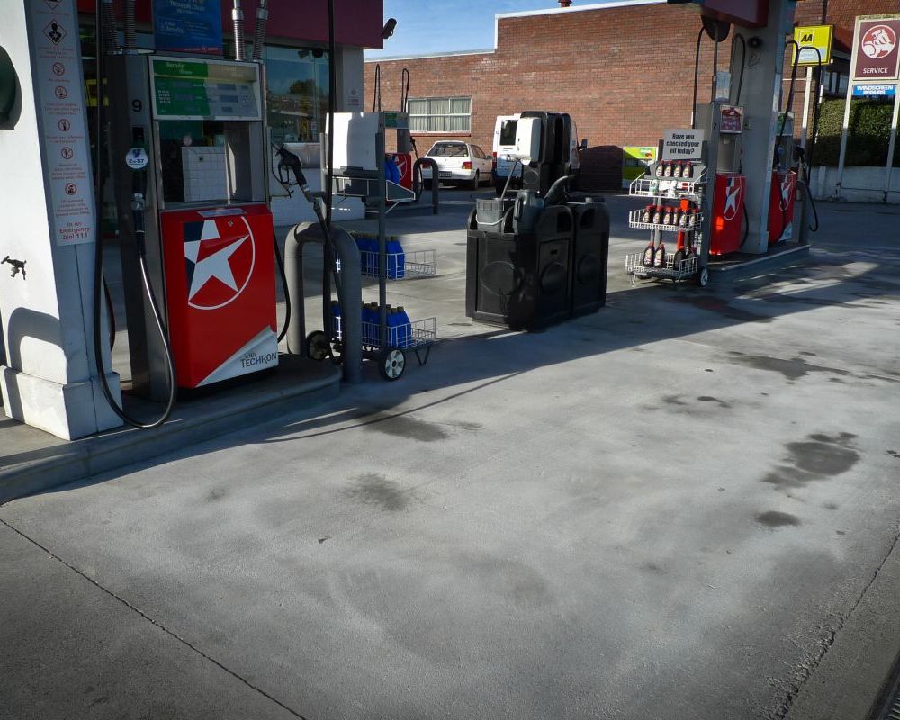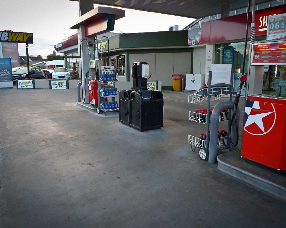 Service station forecourt cleaning.