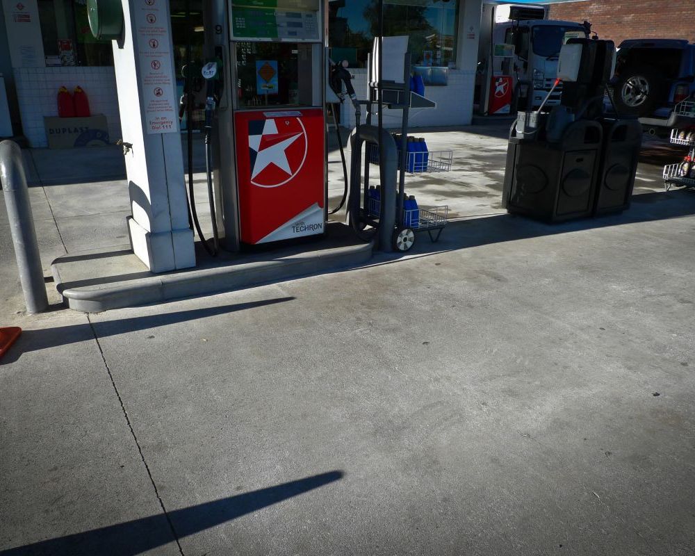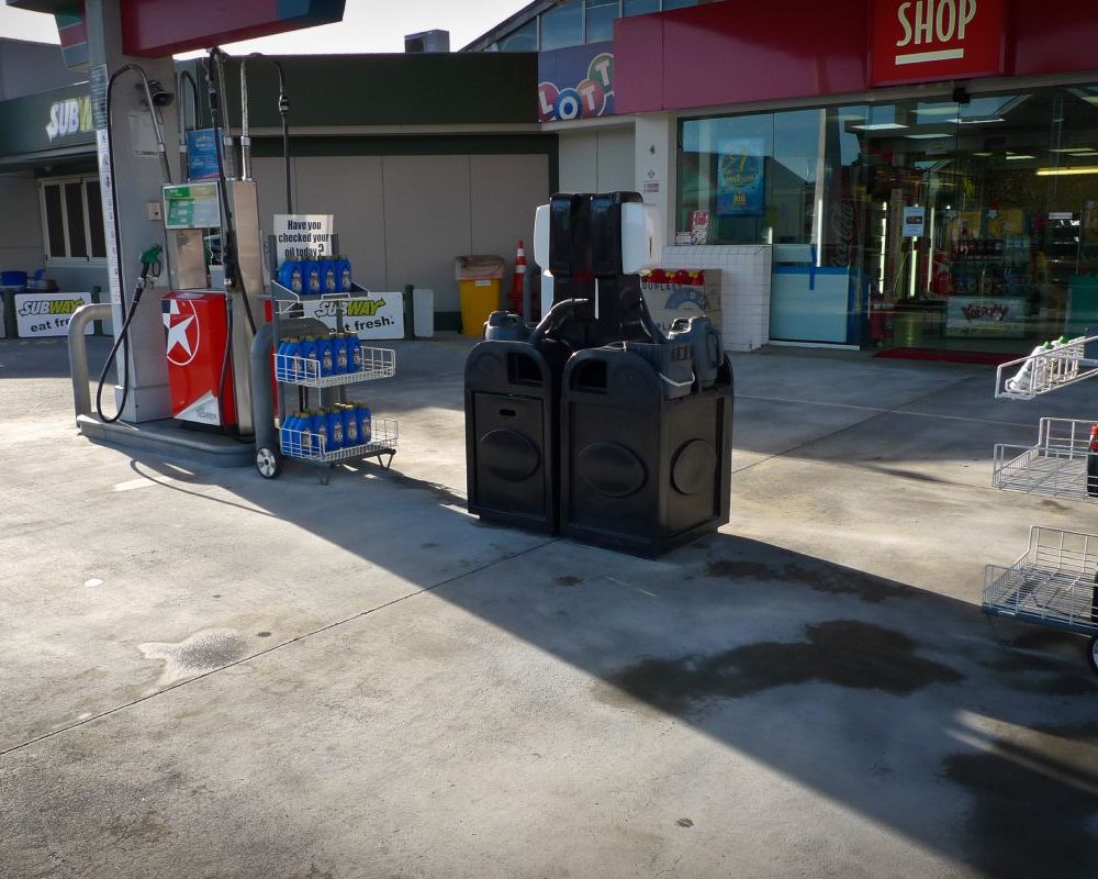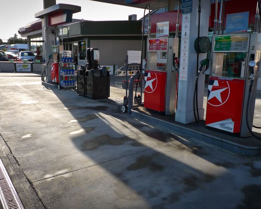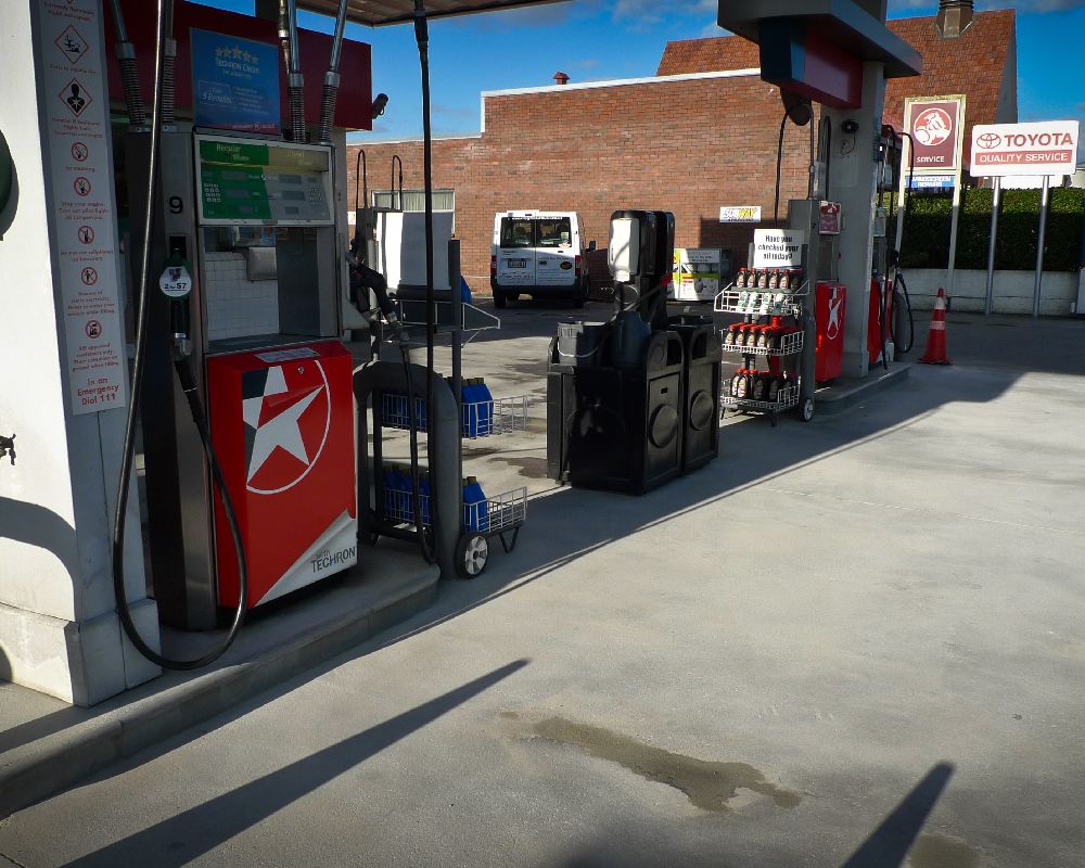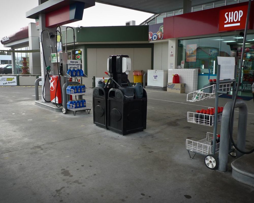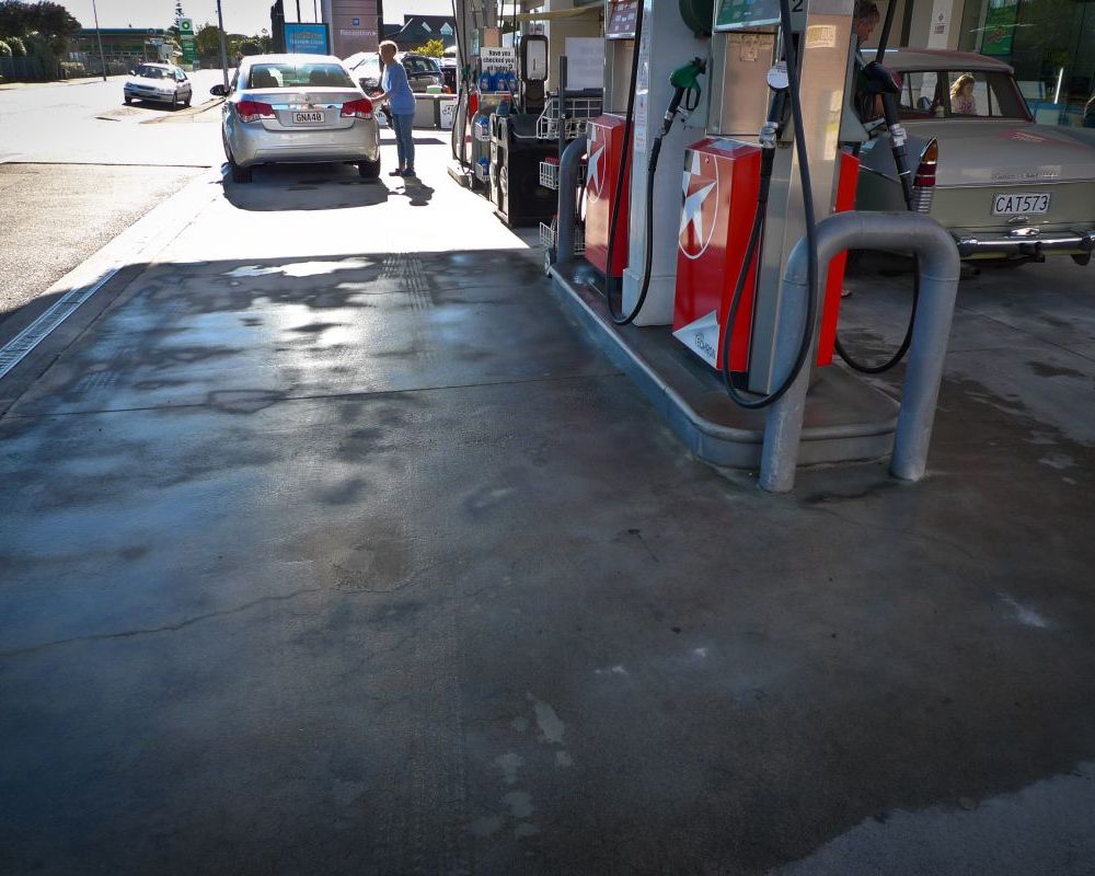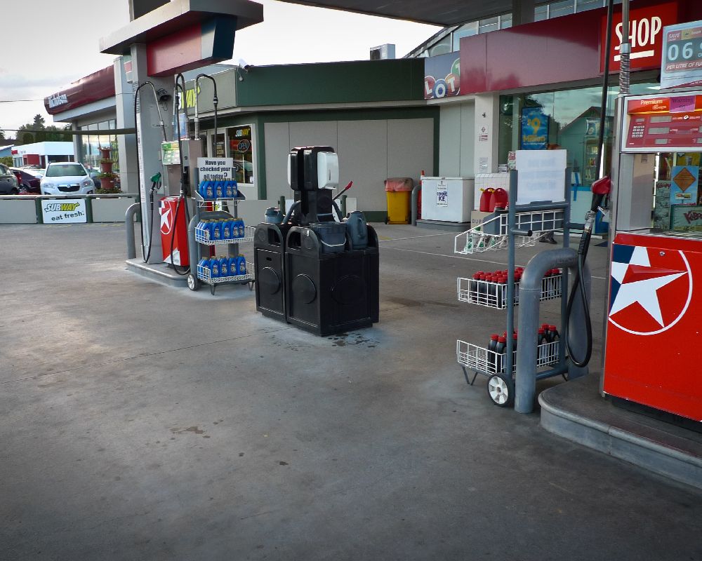 Service station forecourt cleaning.