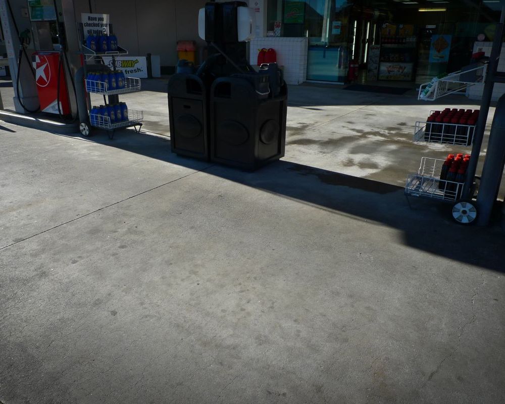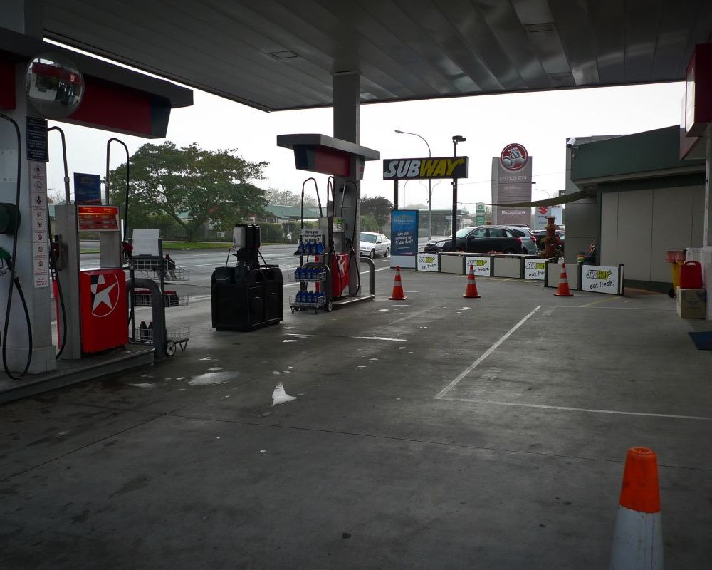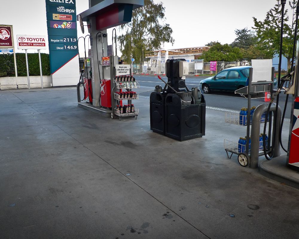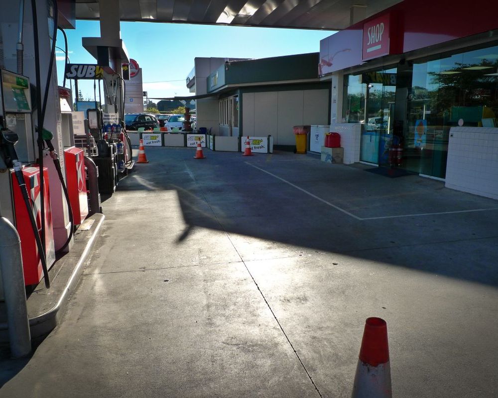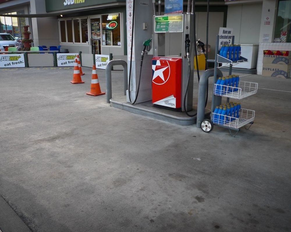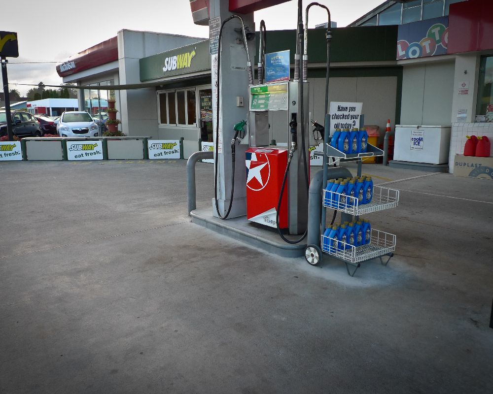 Service station forecourt cleaning.