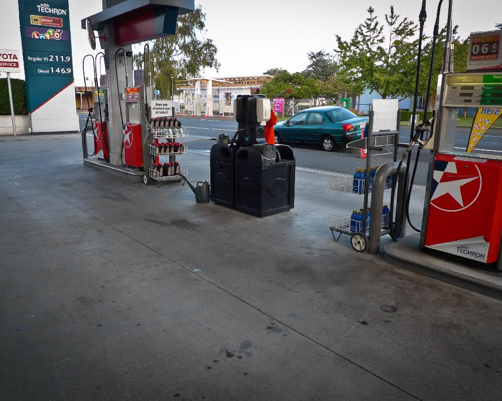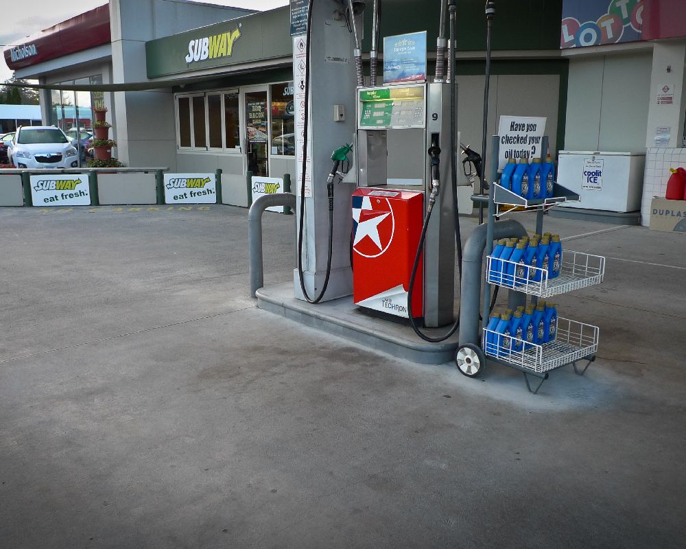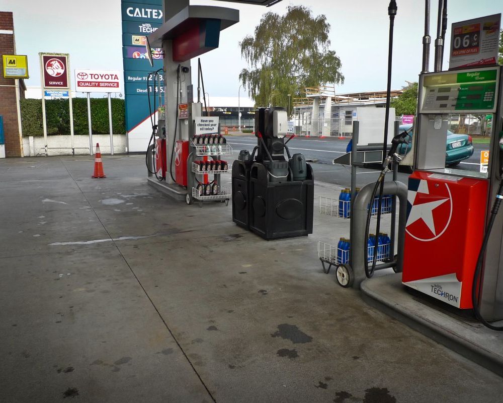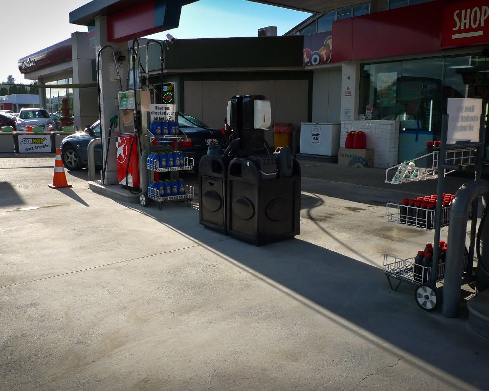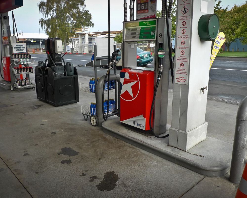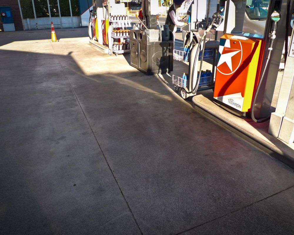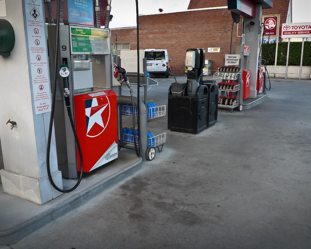 Service station forecourt cleaning.