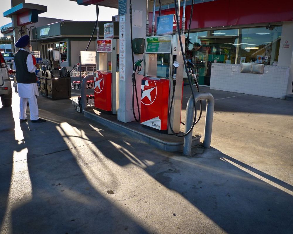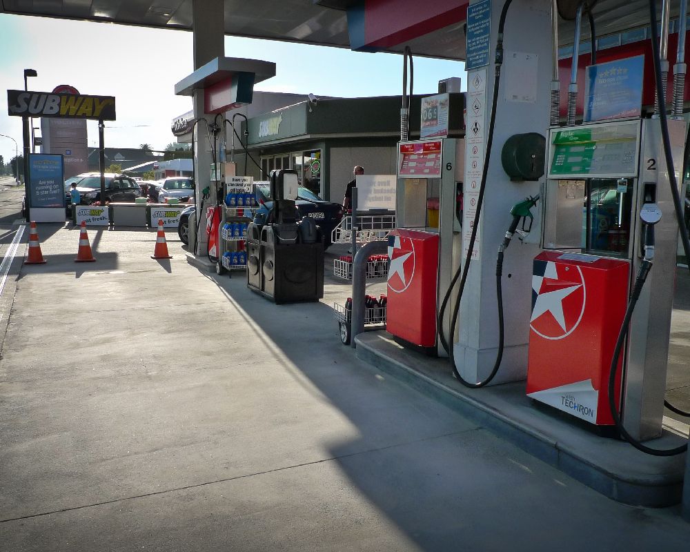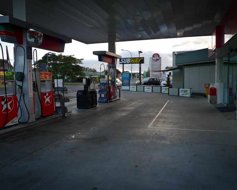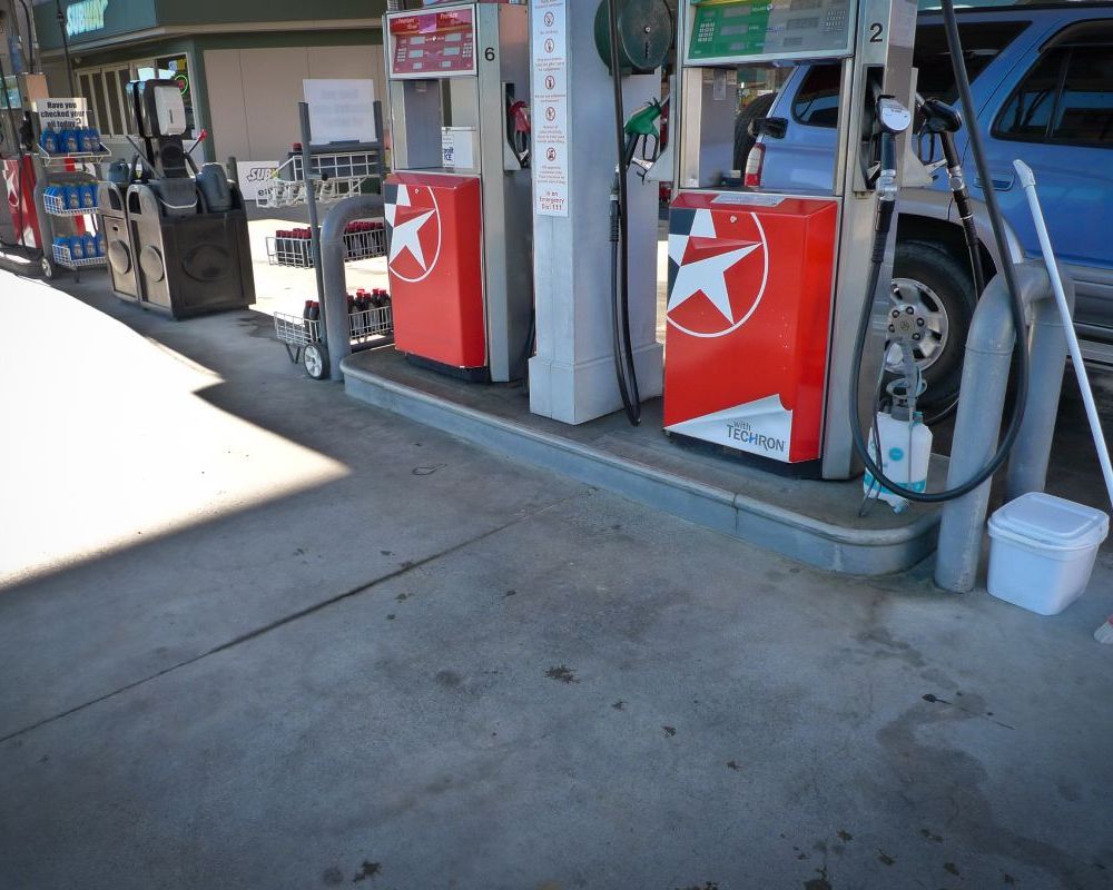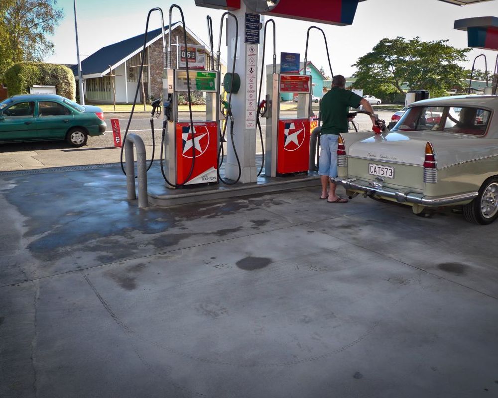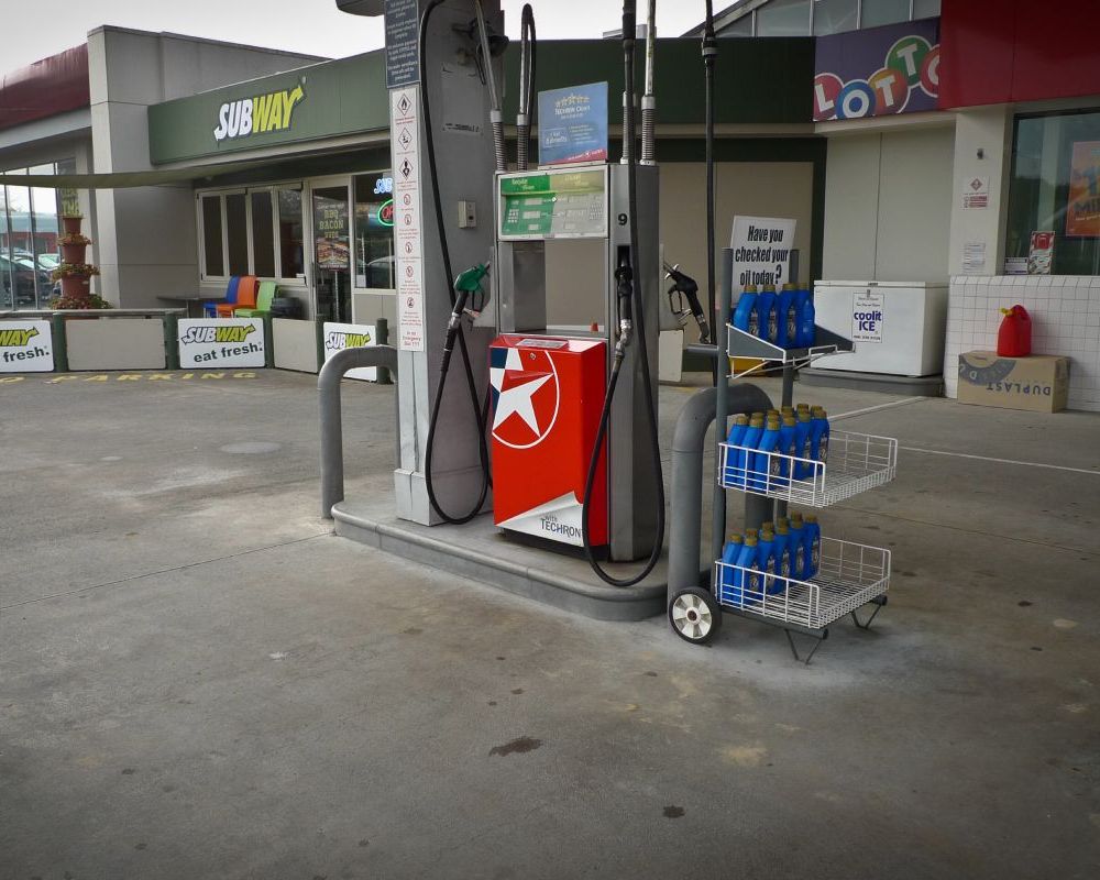 Service station forecourt cleaning.