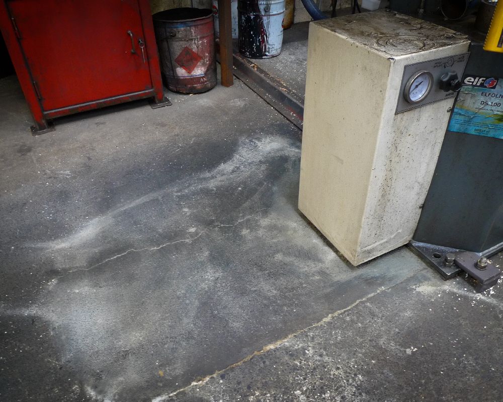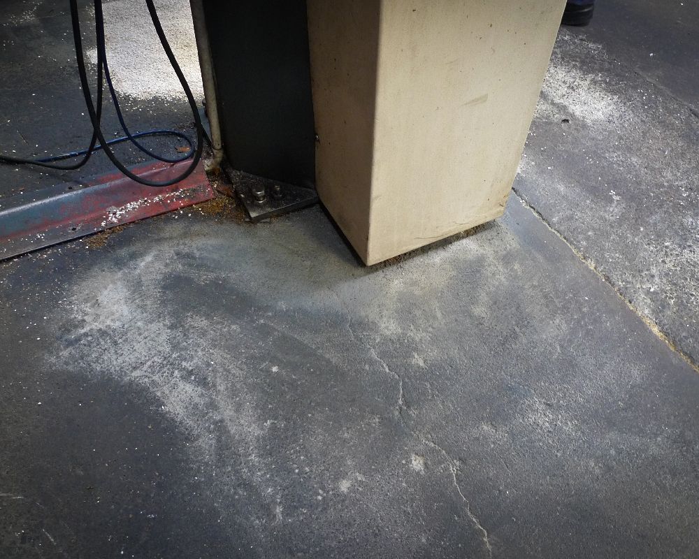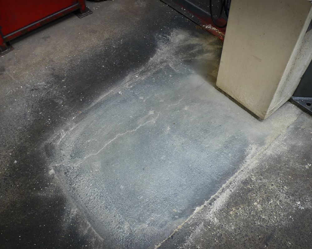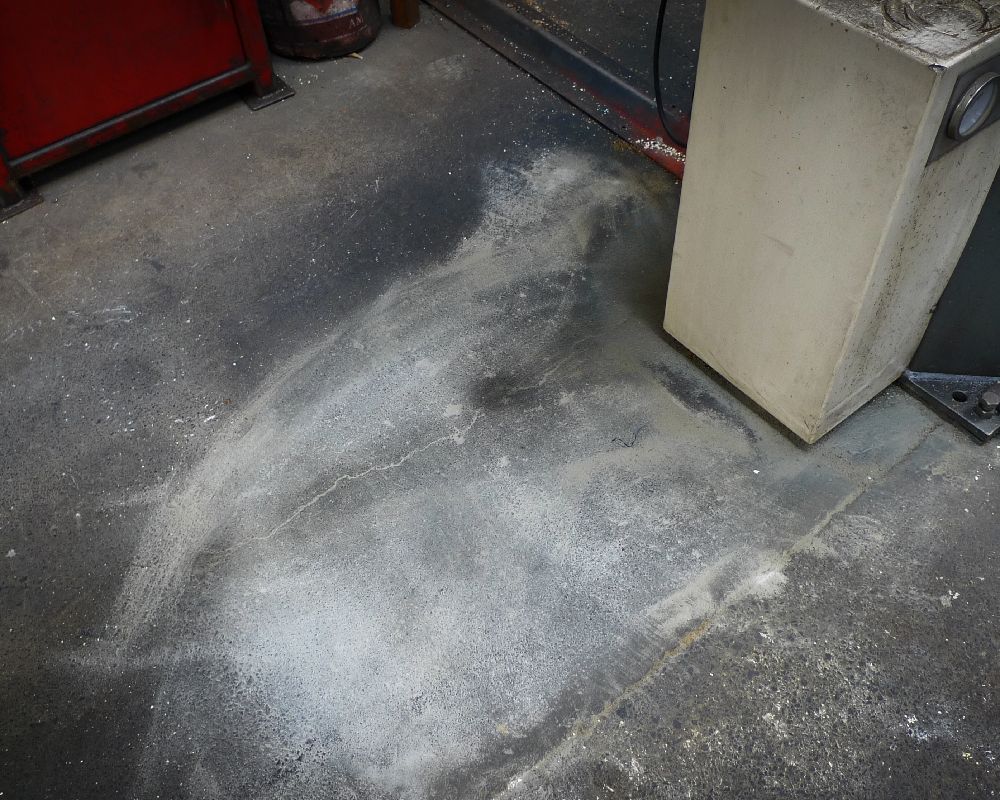 Indoor remediation of machine oils, hydraulic fluids helps to provide a safer work environment. The images below relate to the early stages of area testing for a machine that had a constant leak. Terminator-HSD manages to remediate the surrounding area and fresh oil as it leaked. Preventing the oil from seeping beyond the machine base. Where there are decades of build up, it is expected to take more time. However, it will happen.