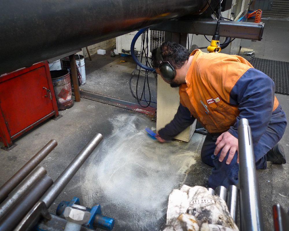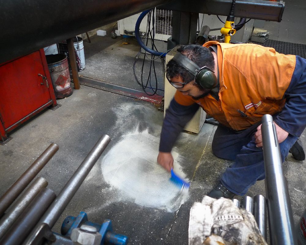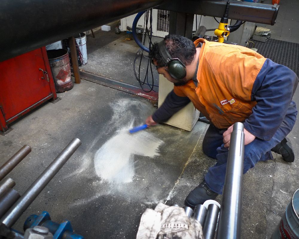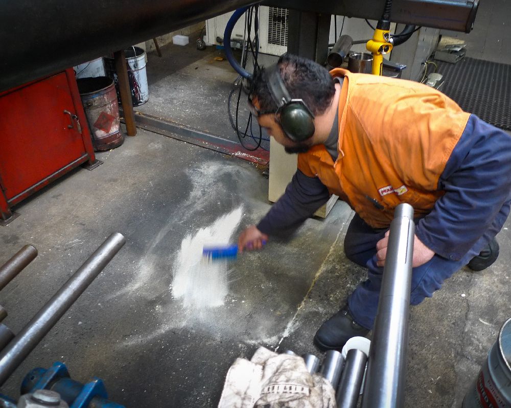 Indoor remediation of machine oils, hydraulic fluids helps to provide a safer work environment. The images below relate to the early stages of area testing for a machine that had a constant leak. Terminator-HSD manages to remediate the surrounding area and fresh oil as it leaked. Preventing the oil from seeping beyond the machine base. Where there are decades of build up, it is expected to take more time. However, it will happen.